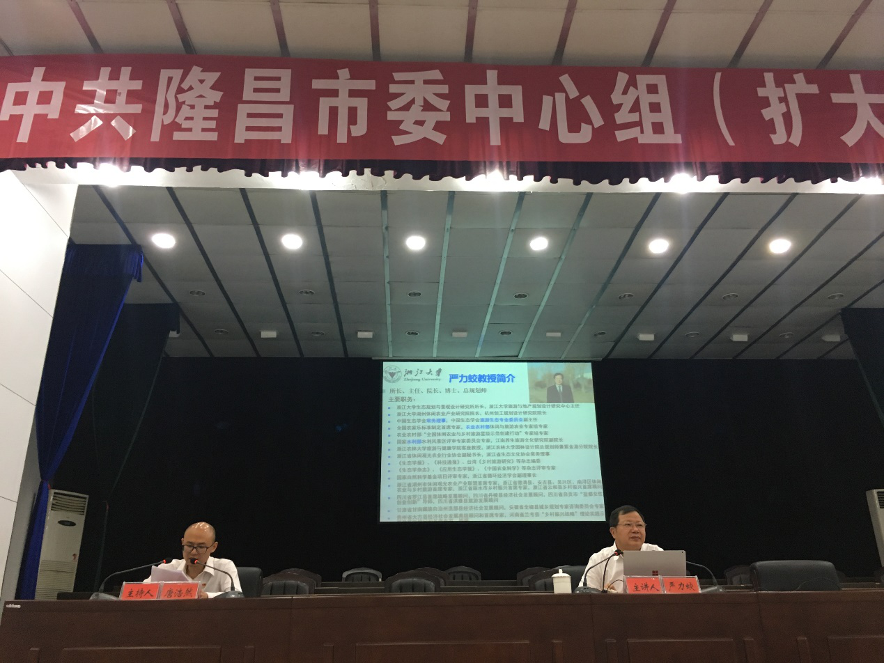 2018年6月2日至4日,浙江大學湖州休閑農(nóng)業(yè)產(chǎn)業(yè)研究院院長嚴力蛟教授應(yīng)邀攜團隊赴四川省隆昌市考察指導鄉(xiāng)村振興規(guī)劃建設(shè),并為隆昌市各級領(lǐng)導作了實施鄉(xiāng)村振興戰(zhàn)略專題講座。